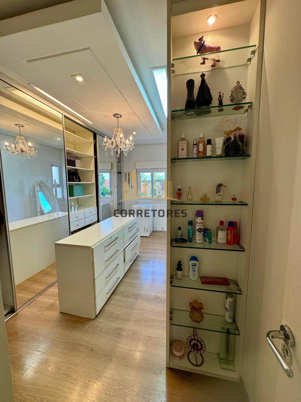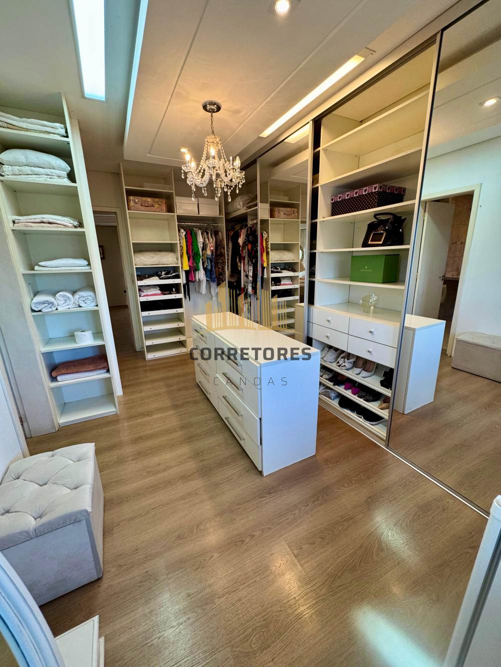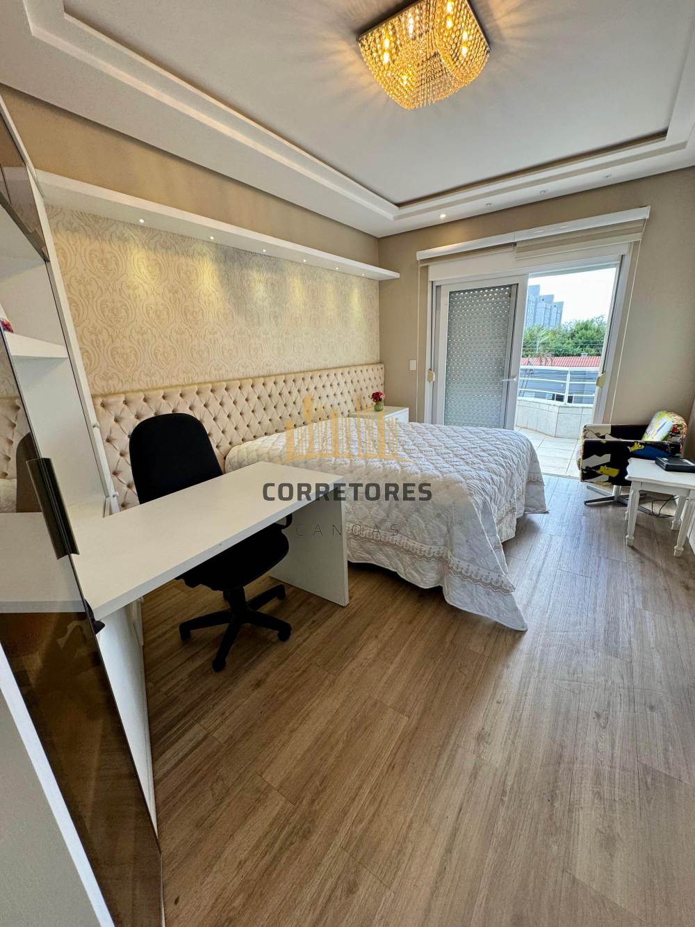 A parte externa dispõe de um pátio amplo com piscina, quiosque com churrasqueira, área gourmet e um banheiro. O imóvel possui garagem coberta para quatro carros, sistema de aquecimento de água, alarme, câmeras de vigilância e tubulação de gás.