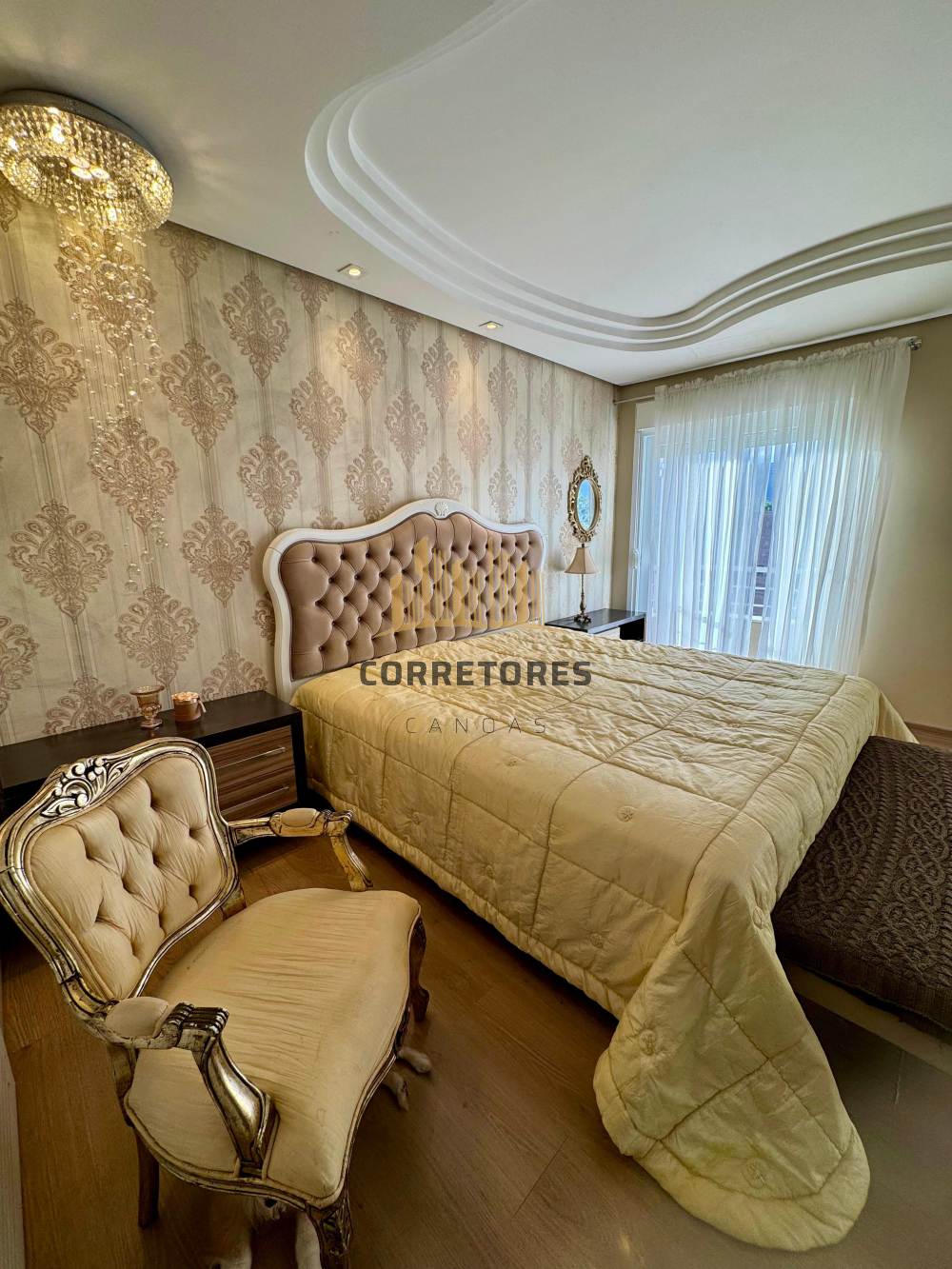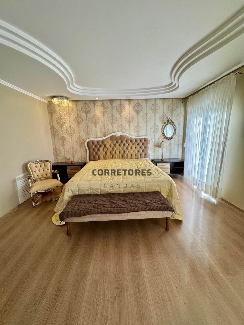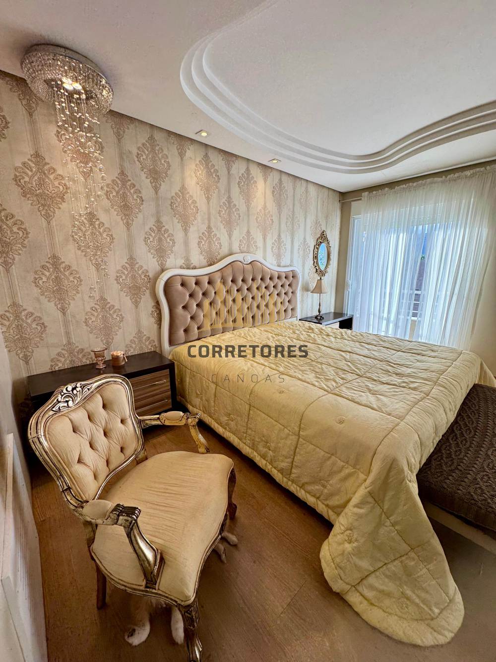 A parte externa dispõe de um pátio amplo com piscina, quiosque com churrasqueira, área gourmet e um banheiro. O imóvel possui garagem coberta para quatro carros, sistema de aquecimento de água, alarme, câmeras de vigilância e tubulação de gás.