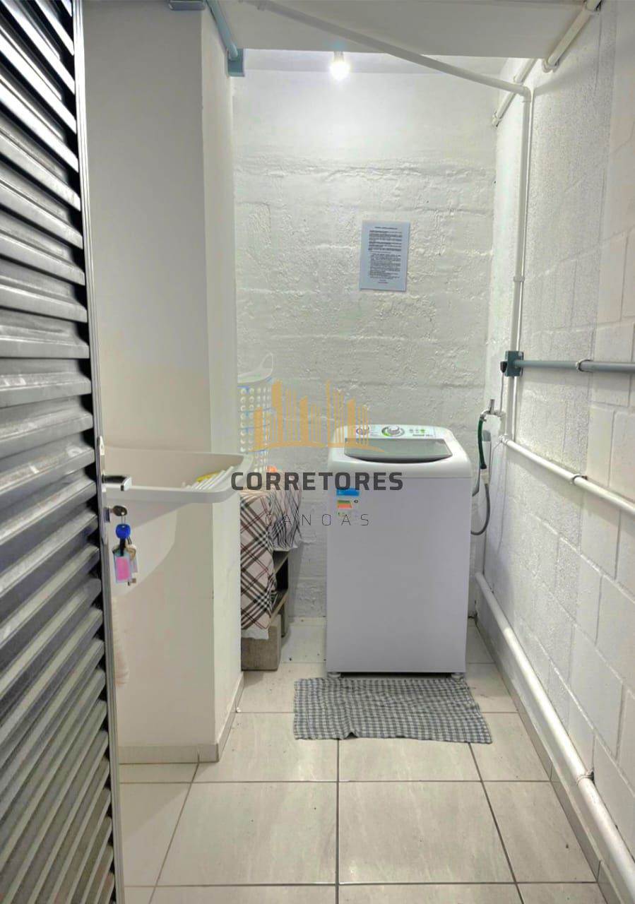 Condomínio com lavanderia coletiva e também espera para máquina de lavar no apartamento.