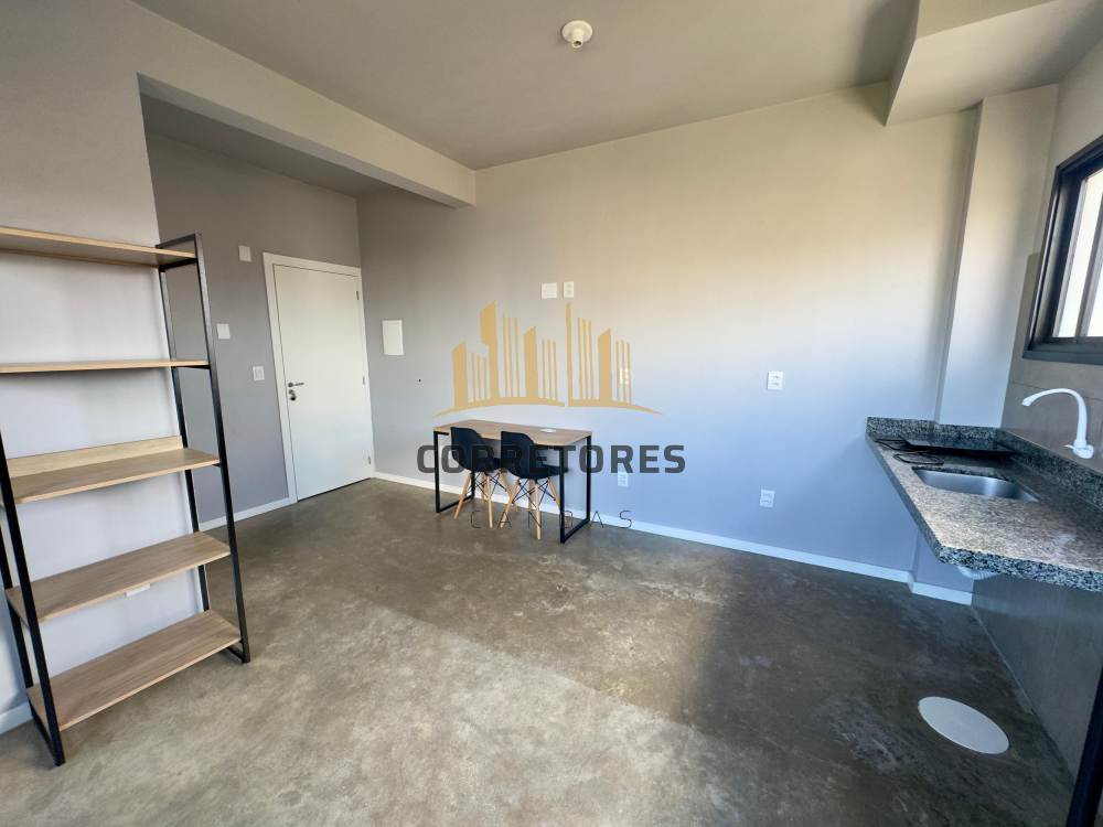 Kitnet com 30m2, banheiro social, cozinha com fogão de indução, banheiro social com armário e box de vidro.