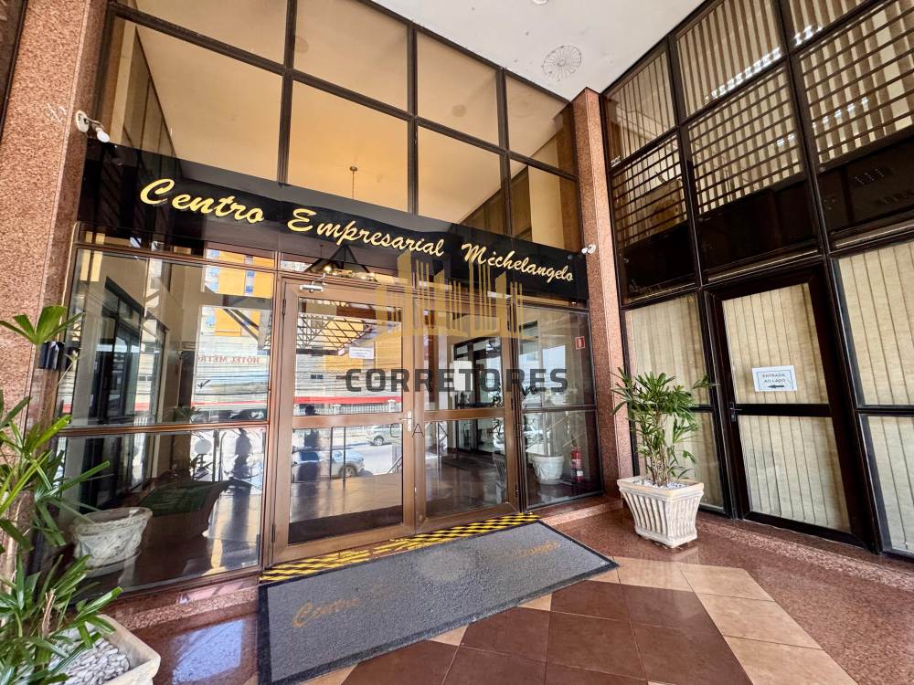 Ampla sala comercial com aproximadamente 79m2, banheiro social, vista panorâmica e 1 vaga de garagem.