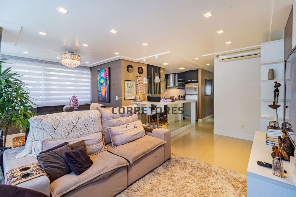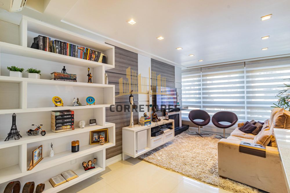 Possui living amplo para dois ambientes, sacada integrada, lareira, lavabo, e cozinha com churrasqueira integrada, ideal para receber amigos e familiares.
