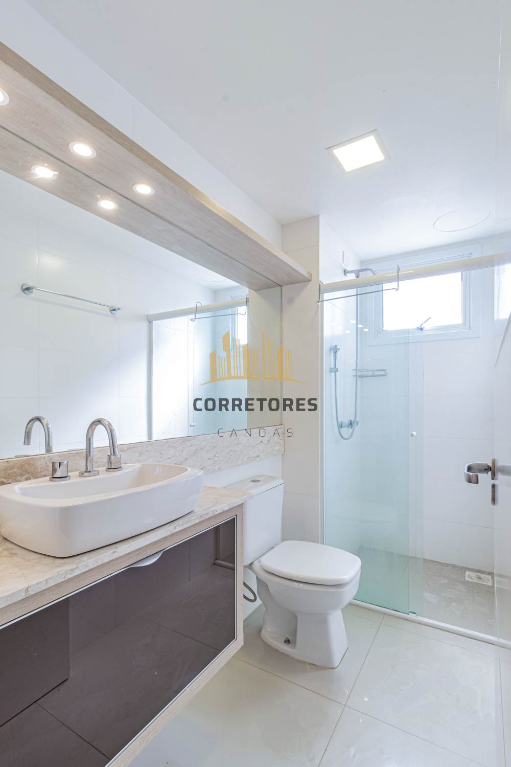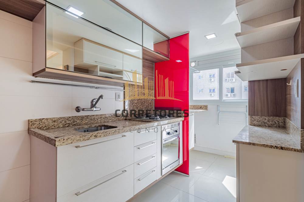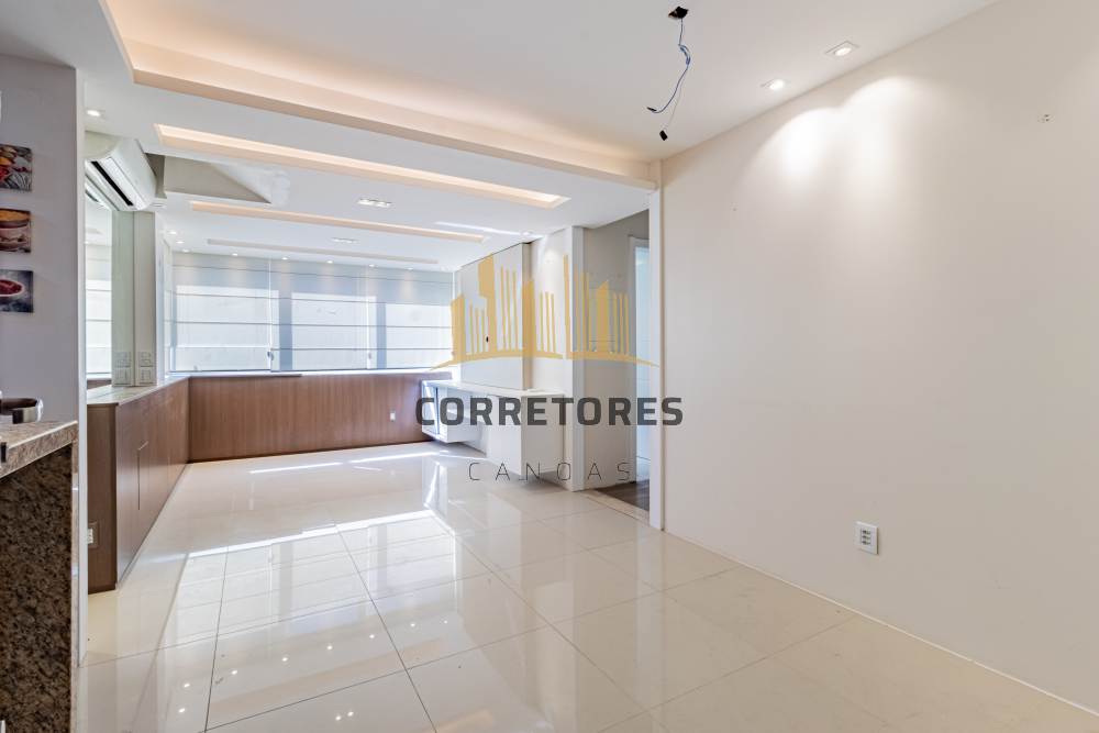 Corretores Canoas - Vende em Canoas, apartamento de dois dormitórios sendo uma suíte, living dois ambientes integrado a sacada, fechamento com vidros termo acústico , cozinha com churrasqueira, banheiro social, área de serviço e duas vagas individuais de garagem cobertas. Permanecendo no imóvel os móveis sob medida, eletros embutidos e 03 splis, água quente e gás central, Edifício torre única, localizado no bairro Marechal Rondon, próximo ao Park Shopping Canoas, Parque Getúlio Vargas, escolas particulares de ensino padrão, bem como de idiomas. Condomínio com infraestrutura, portaria remota, dois elevadores, piscina, playground, brinquedoteca, vestiários, salão de festas mobiliado com espaço gourmet, pergolado e academia. Possui 68,76 m² de área privativa e 104,47 m² de área total.