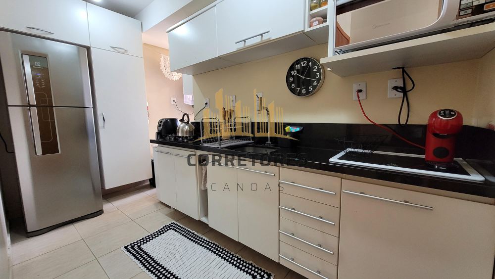 Corretores Canoas Vende - Apartamento com 02 dormitórios, ampla sala de estar/jantar, cozinha com moveis sob medida, aquecedor de agua com pressurizador, e uma vaga de garagem. Condomínio com excelente localização, portaria 24hs e salão de festas com churrasqueira. Aceita financiamento e FGTS.