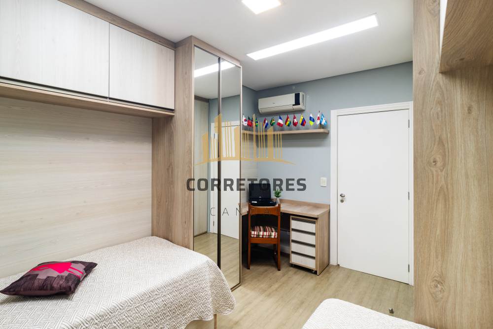 Encante-se com este apartamento de alto padrão, pronto para morar! São 3 dormitórios, todos com ar-condicionado e vidros com isolamento acústico. A suíte master oferece cama king baú, colchão de casal e papel de parede com detalhes em Swarovski – puro luxo! O segundo dormitório está mobiliado com armários, escrivaninha e duas camas de solteiro novíssimas. O terceiro foi transformado em um closet, mas pode ser facilmente revertido em quarto. Todos os móveis, camas e colchões permanecem no imóvel!