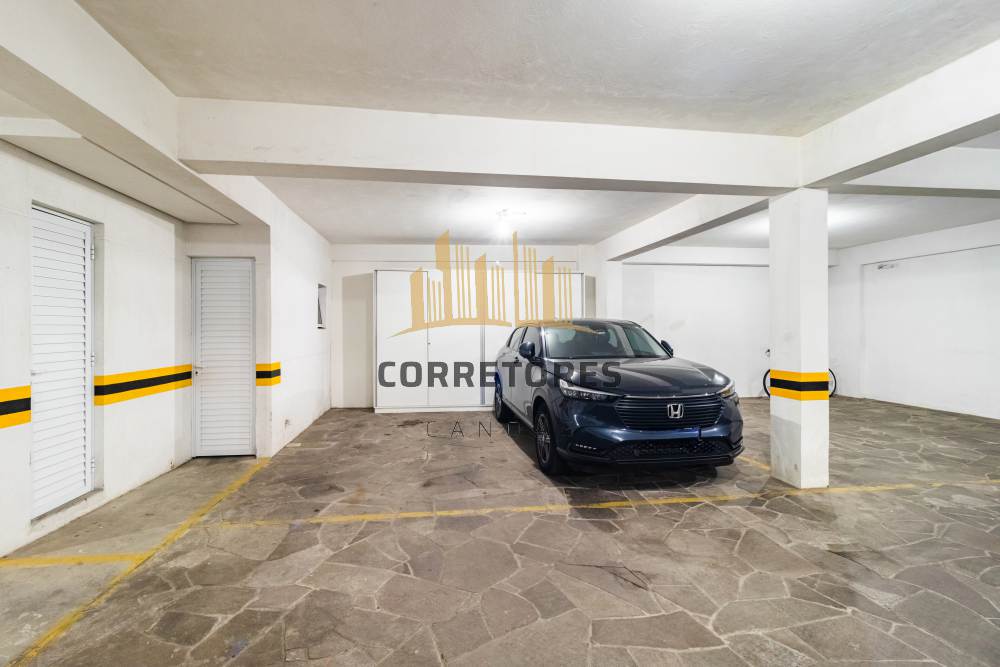 Garagem com 2 vagas lado a lado + armário privativo de 3,85m x 2,45m.