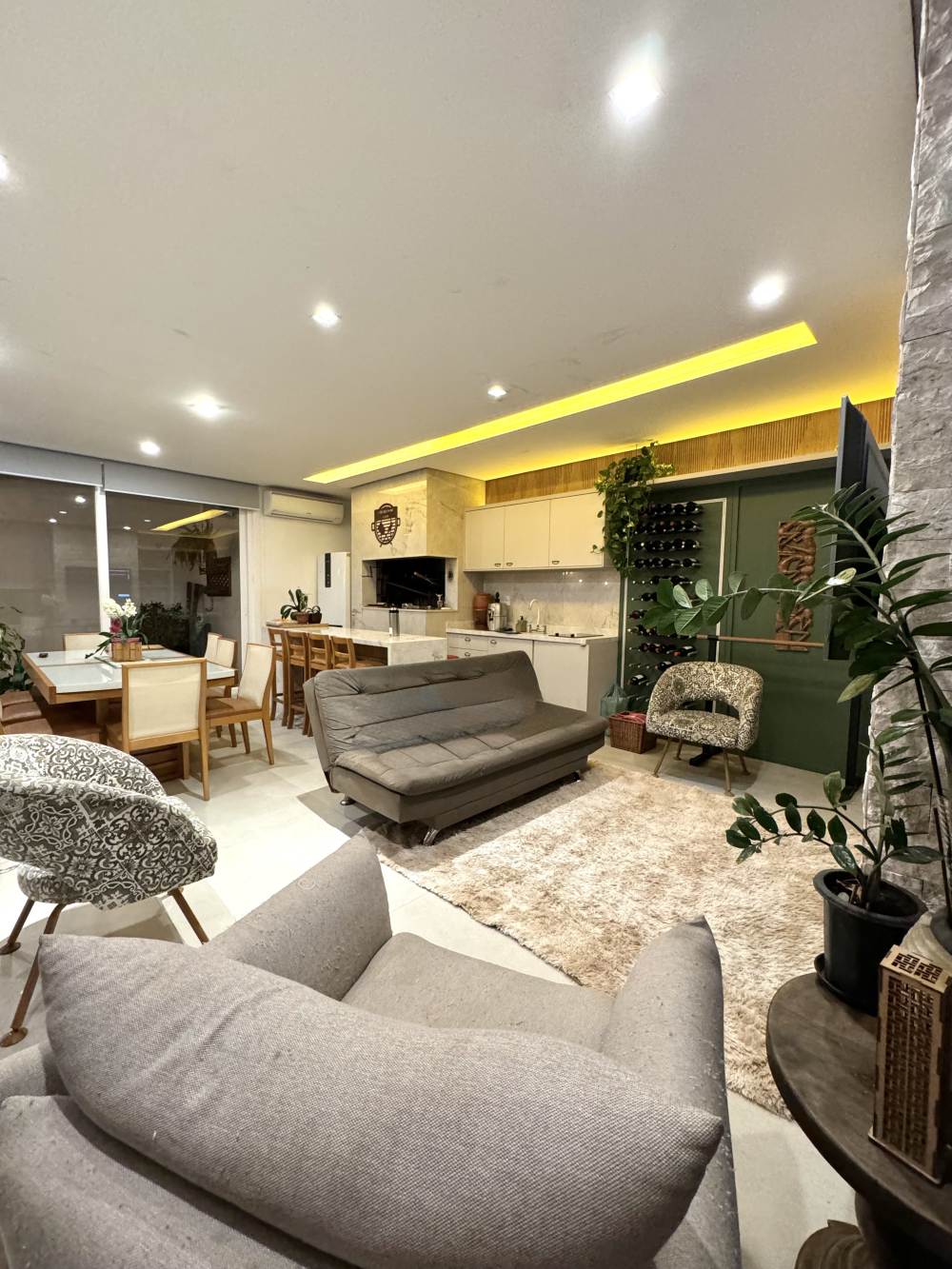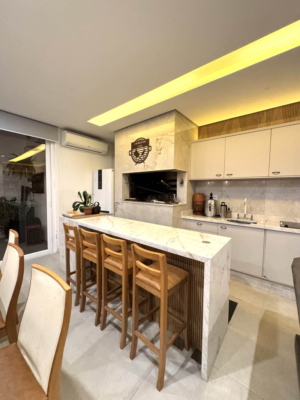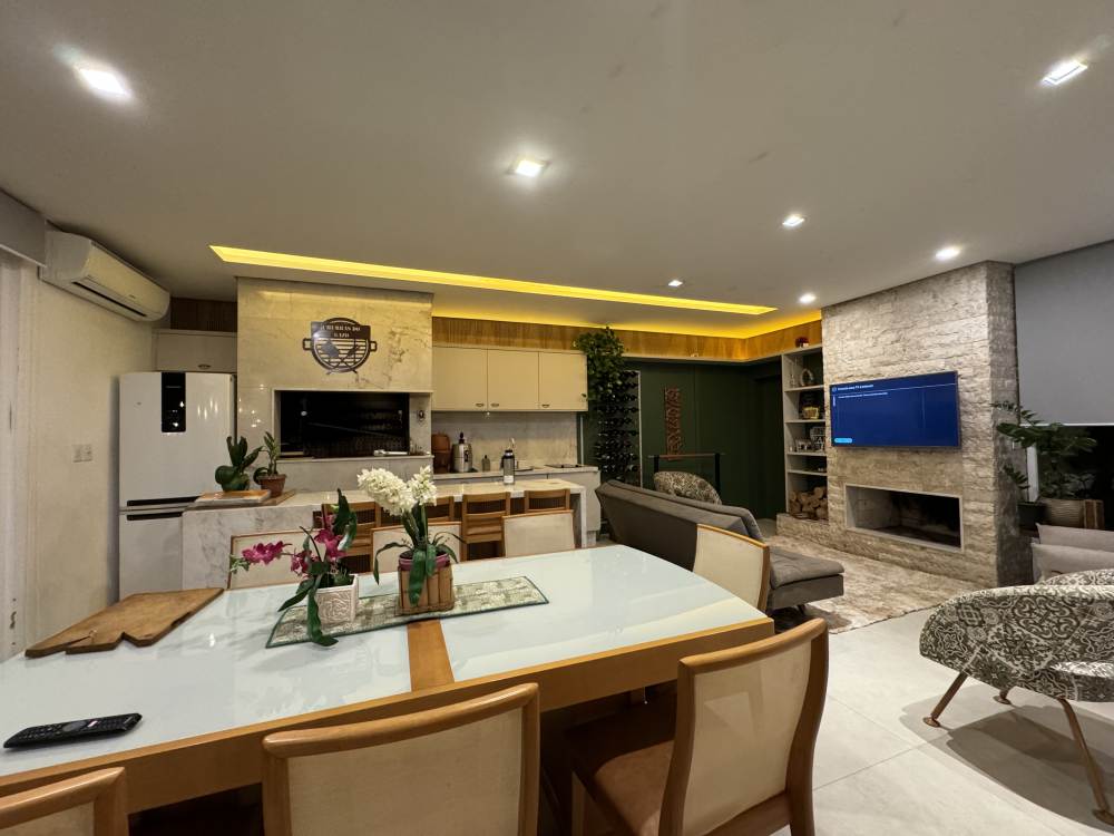 Espaço gourmet fechado, com churrasqueira uruguaia, lareira e banheiro completo, um espaço perfeito para reunir amigos e família!