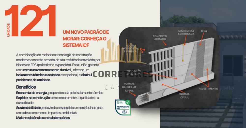 Em Construção, entrega prevista para Março de 2026, excelente padrão em acabamento pátio privativo, 93m2 de área construída, ambientes amplos, excelente iluminação e ventilação natural, living com pé-direito alto - opção ser estendido, cozinha com churrasqueira e espera para ilha, suíte, jardim de inverno, varanda gourmet, espaço para 2 carros, amplas aberturas em alumínio preto, piso porcelanato 90x90 em toda casa, espera para splits e água quente, forro rebaixado em gesso, entrada de energia trifásico.