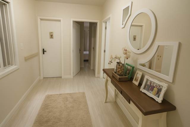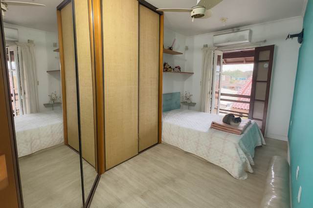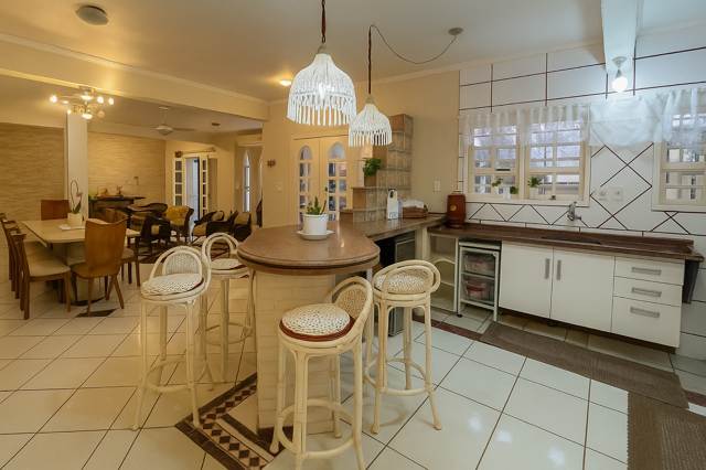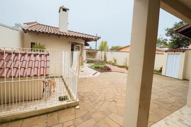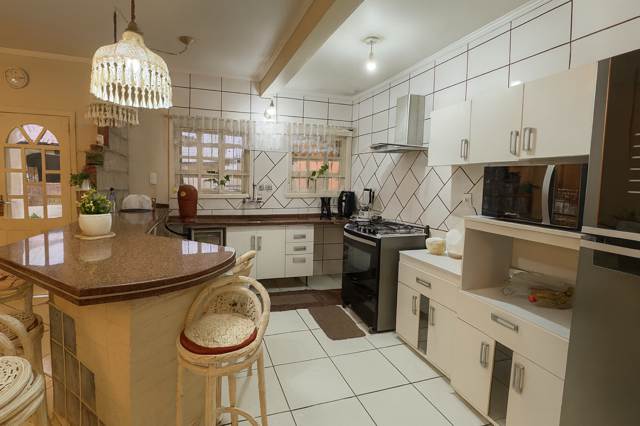 Corretores Canoas – Vende, Sobrado com 03 dormitórios sendo uma suíte com closet, hidro e sacada, banheiro social na parte superior, na parte inferior uma ampla sala de estar, sala de jantar e cozinha integrada, lareira, a cozinha fica mobiliada, uma ampla lavanderia separada da cozinha, um espaço que pode ser transformado em jardim de inverno.