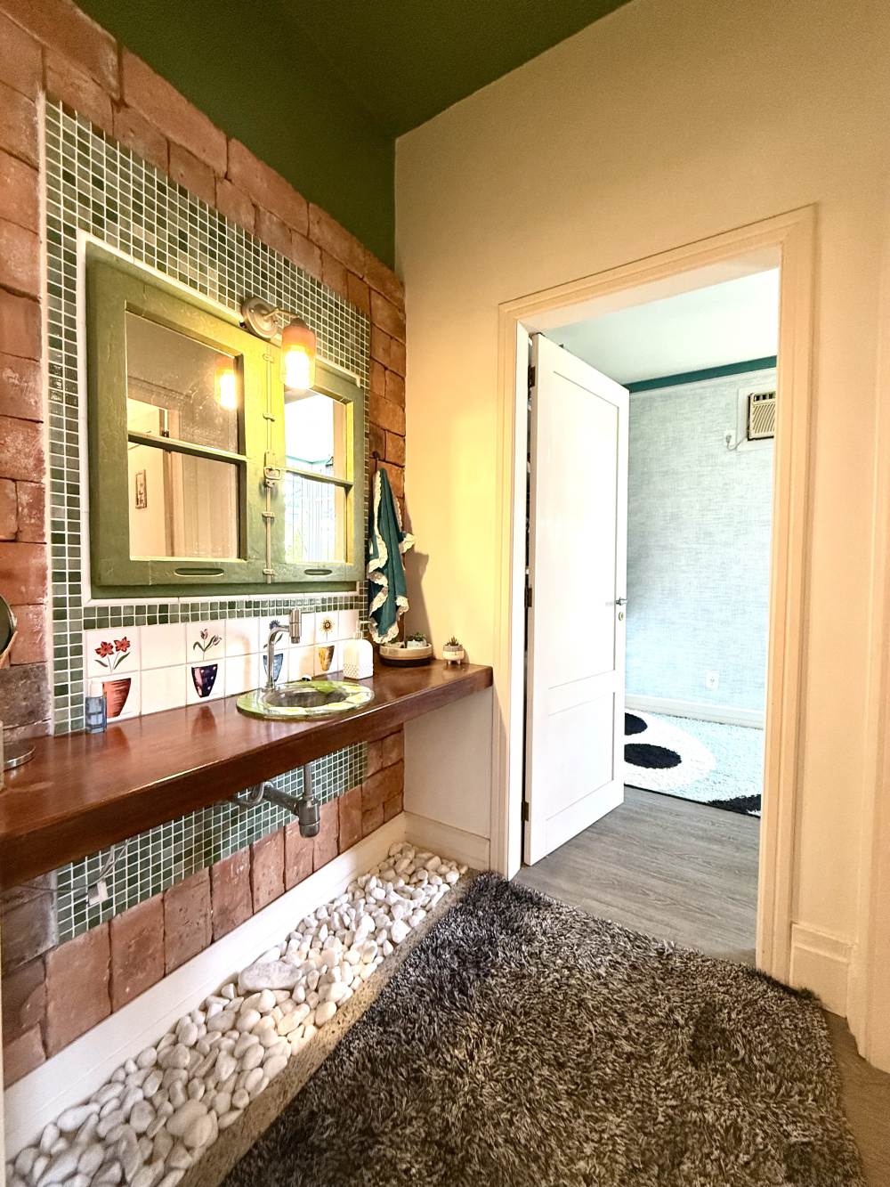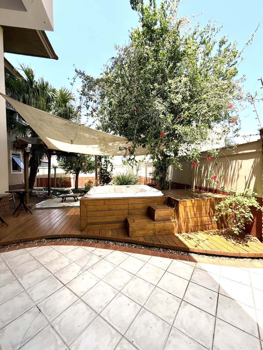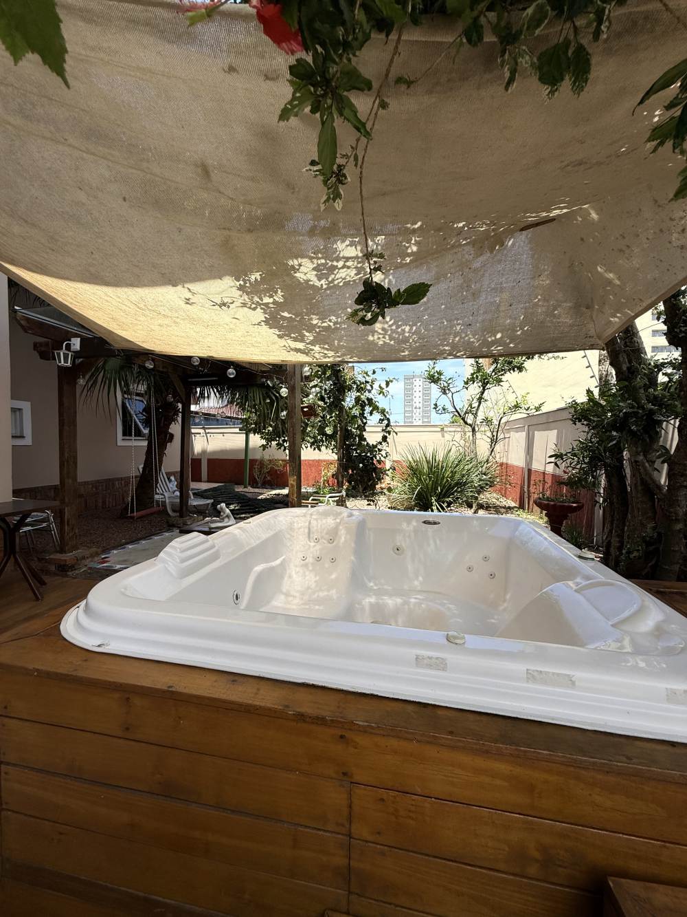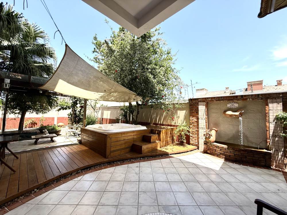 Construída no centro de dois terrenos, oferece duas áreas externas espetaculares: um jardim com árvores frutíferas, fonte e hidromassagem — verdadeiro clima de spa e outro lado integrado ao espaço gourmet com churrasqueira, forno de pizza e pergolado para momentos especiais. A garagem é ampla, comportando vários carros lado a lado, com aquela sensação de casa de novela.