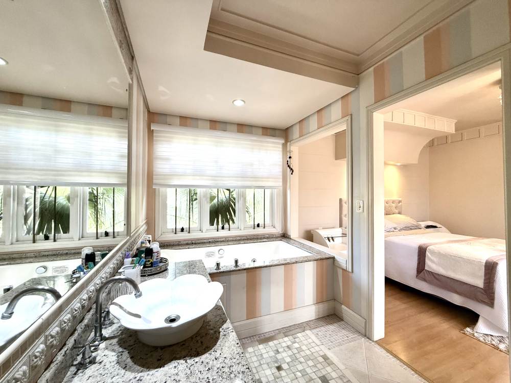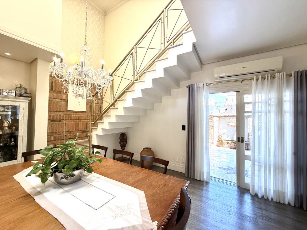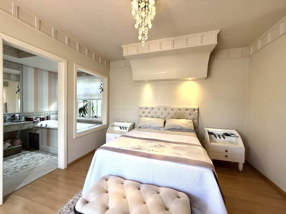 Com arquitetura neoclássica e detalhes exclusivos, a casa impressiona desde a porta de entrada em estilo demolição. São 3 suítes amplas no pavimento superior e um escritório no térreo, com banheiro ao lado, que pode facilmente ser transformado em um quarto para quem precisa de dormitório térreo.