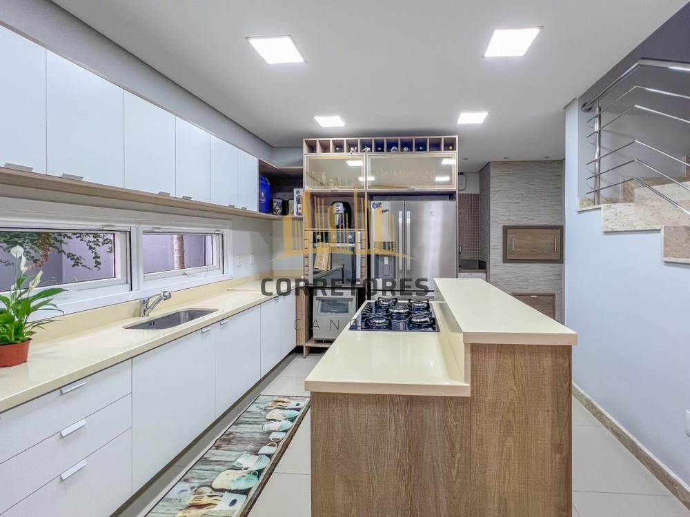 Casa-Sobrado mobiliado, com 03 dormitórios, sendo 01 suíte com closet, lavabo, cozinha com móveis planejados, banheiro social, área de serviço, pátio privativo frente e fundos, 02 vagas de garagem cobertas, ar Split nos dormitórios, e 02 vagas cobertas de garagem.