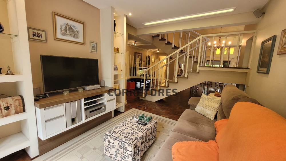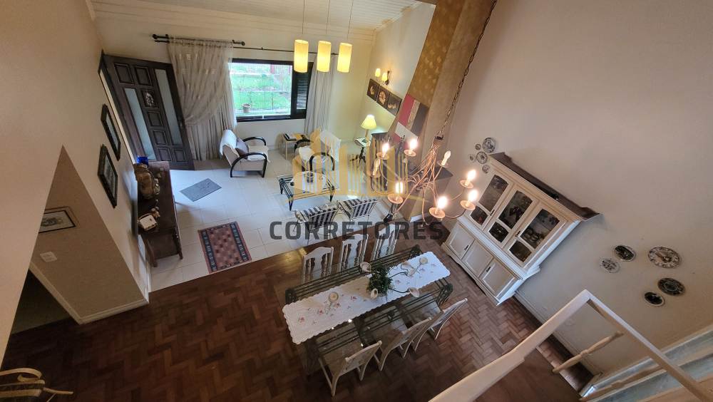 Ampla casa/sobrado com 189m² de área construída, terreno com 370m² (10m x 37m), 03 dormitórios, sendo 01 suíte master com banheira de hidromassagem e sacada, 1 banheiro social, 1 lavabo, amplo living com lareira e sala de jantar integrados. Sala de tv, cozinha com móveis planejados, área de serviço e dispensa, 3 vagas de garagem, sendo 1 coberta e 02 descobertas, edícula com uma peça extra e canil. Pátio na frente e nos fundos, repleto de flores, chás e árvores frutíferas.