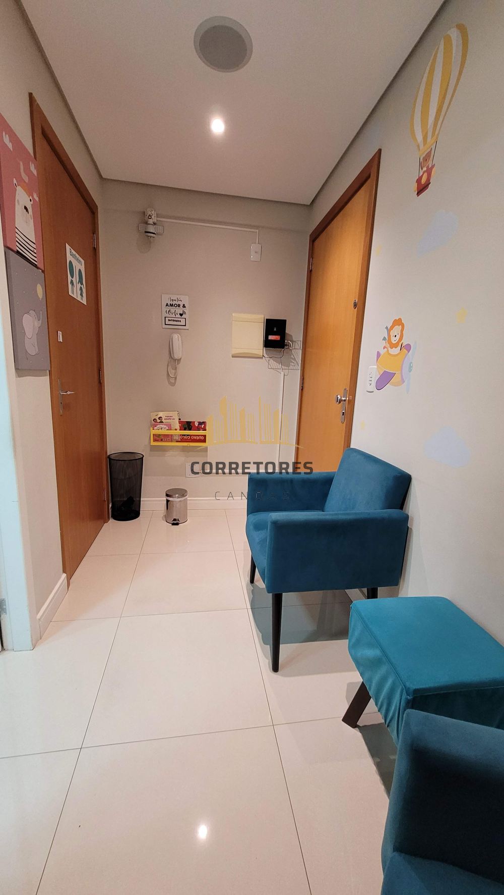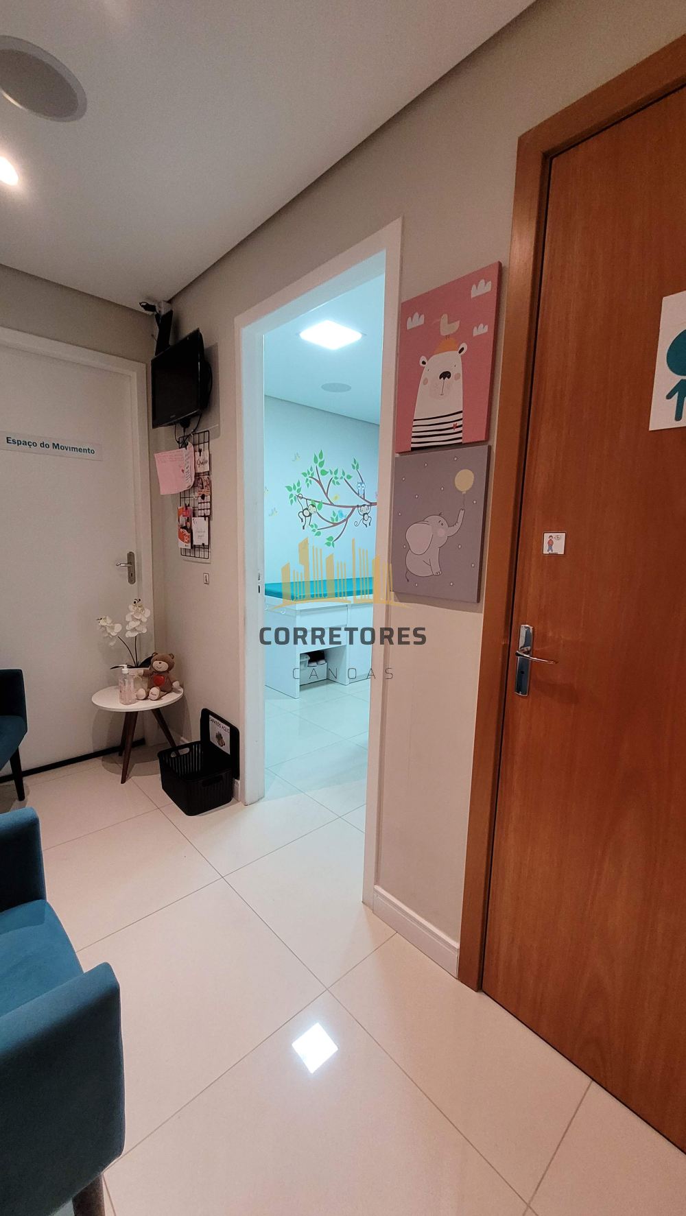 Corretores Canoas Vende - Sala comercial totalmente mobiliada e decorada, hoje é utilizada como consultório medico de fonoaudiologia pediátrica. DUAS VAGAS cobertas, condomínio com portaria 24hs, 2 elevadores (sendo um com tamanho para maca), salão de festas/reunião, e localização privilegiada, bem pertinho do fórum de Canoas.