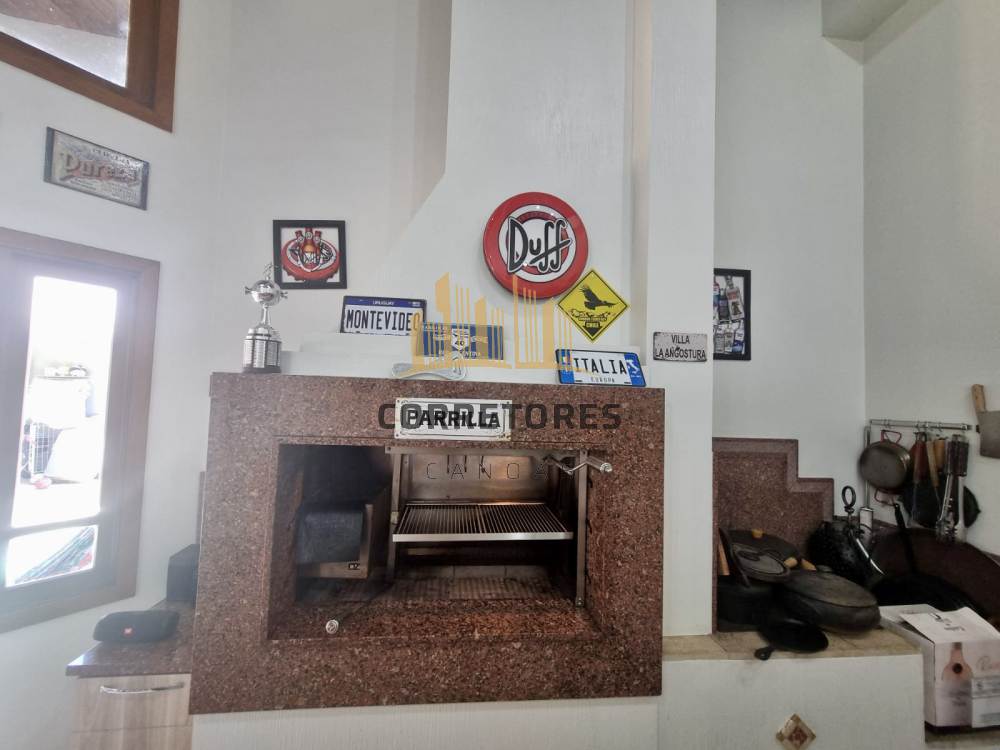 Tem Lavanderia, piscina, salão de festas com parrilla e fogão a lenha. A piscina conta com aquecimento solar. A casa possui placas fotovoltaicas para geração de energia. Também conta com 3 banheiros e um lavabo. Os chuveiros e torneiras com aquecimento à gás.