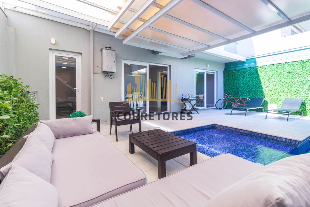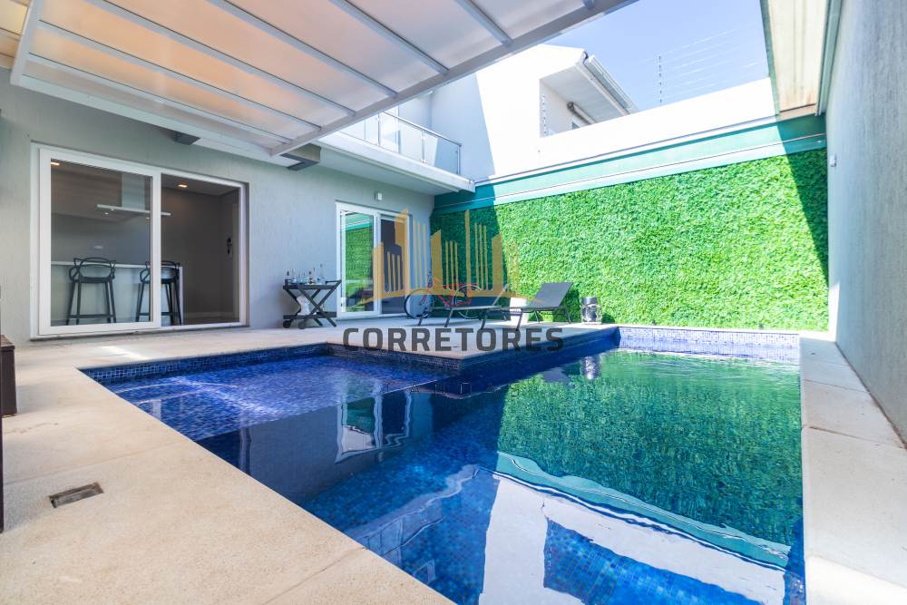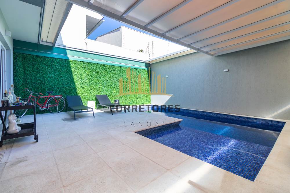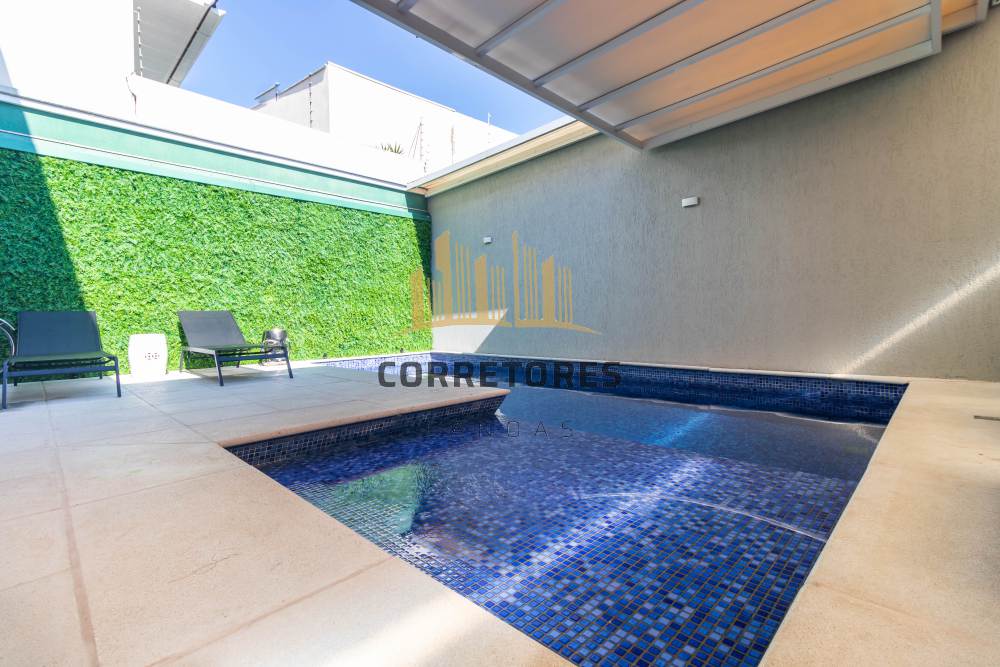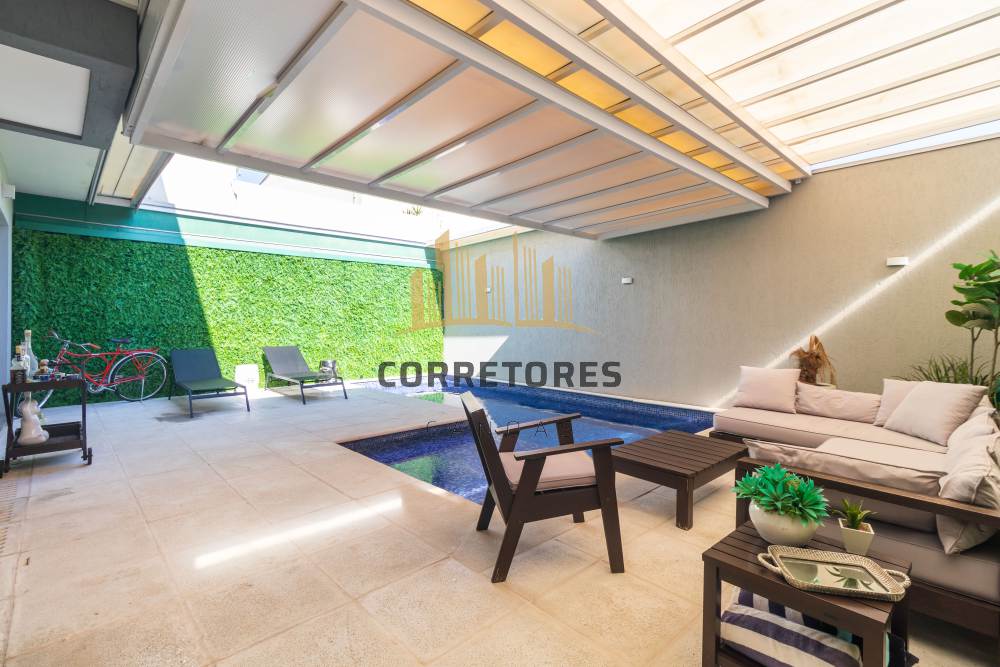 O pátio conta com piscina térmica em concreto revestida com pastilhas, cobertura retrátil e 04 (quatro) vagas de garagem, garantindo conforto, segurança e lazer para toda a família.