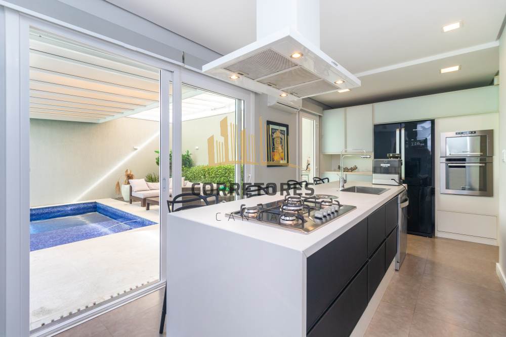 Imóvel de alto padrão, com 03 (Três) suítes (todas com closet, sacada e piso em madeira natural), ampla sala de estar com lareira, sala de jantar, lavabo, cozinha com ilha gourmet, churrasqueira e lavanderia.