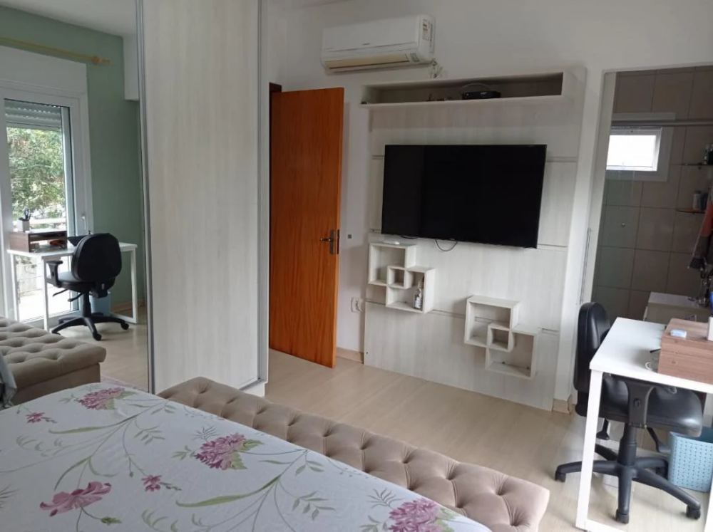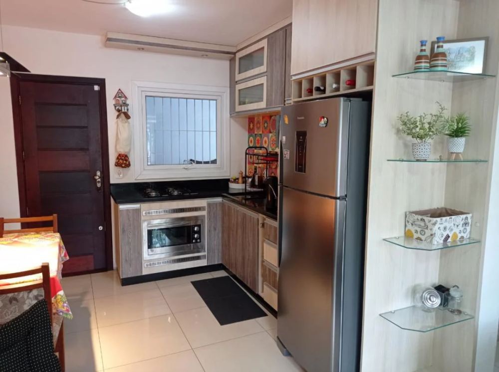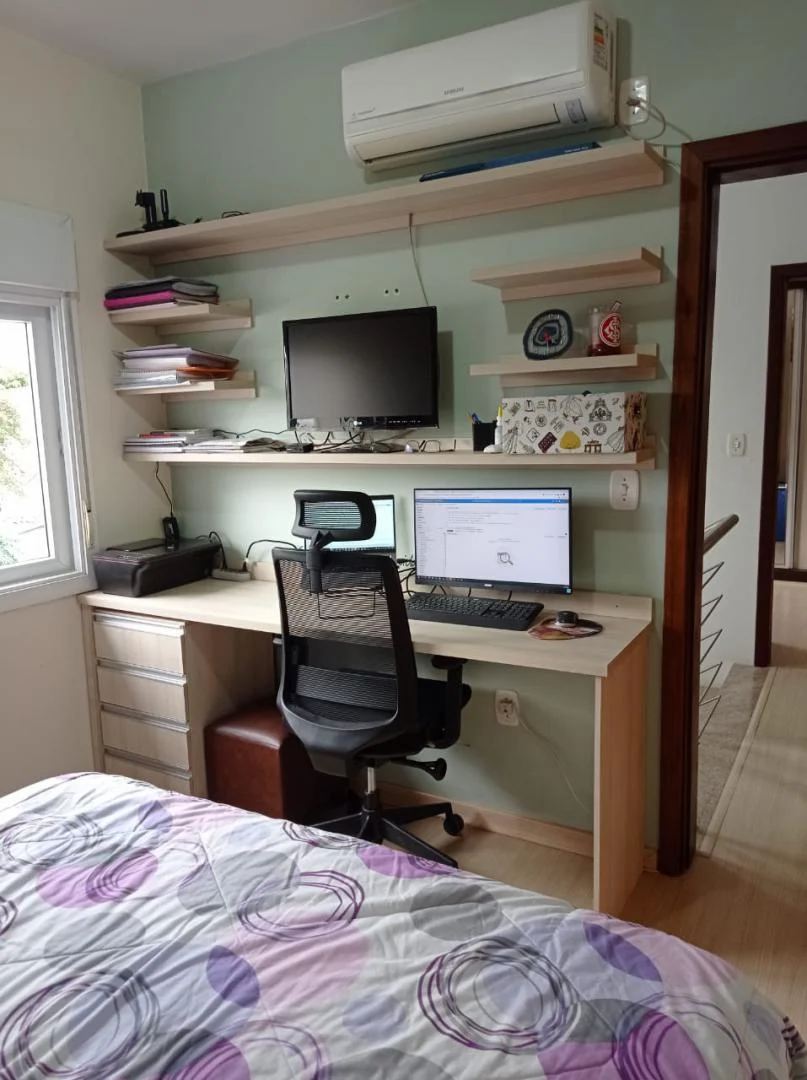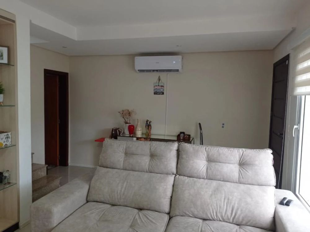 Corretores Canoas - Vende, Sobrado com 03 dormitórios, suíte, no imóvel ficam todos móveis planejados e 04 ap. de ar condicionado, living 02 ambientes com lareira, lavabo, cozinha planejada, garagem coberta para 2 carros, churrasqueira e espaço gourmet, imóvel em bom estado de conservação, realmente uma ótima oportunidade.