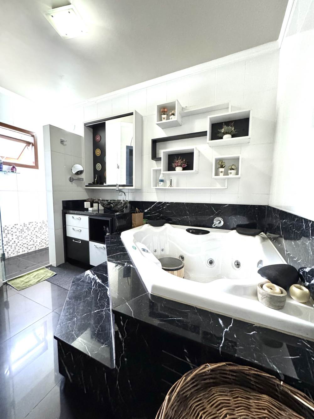 - 01 suíte master com banheira de hidromassagem;