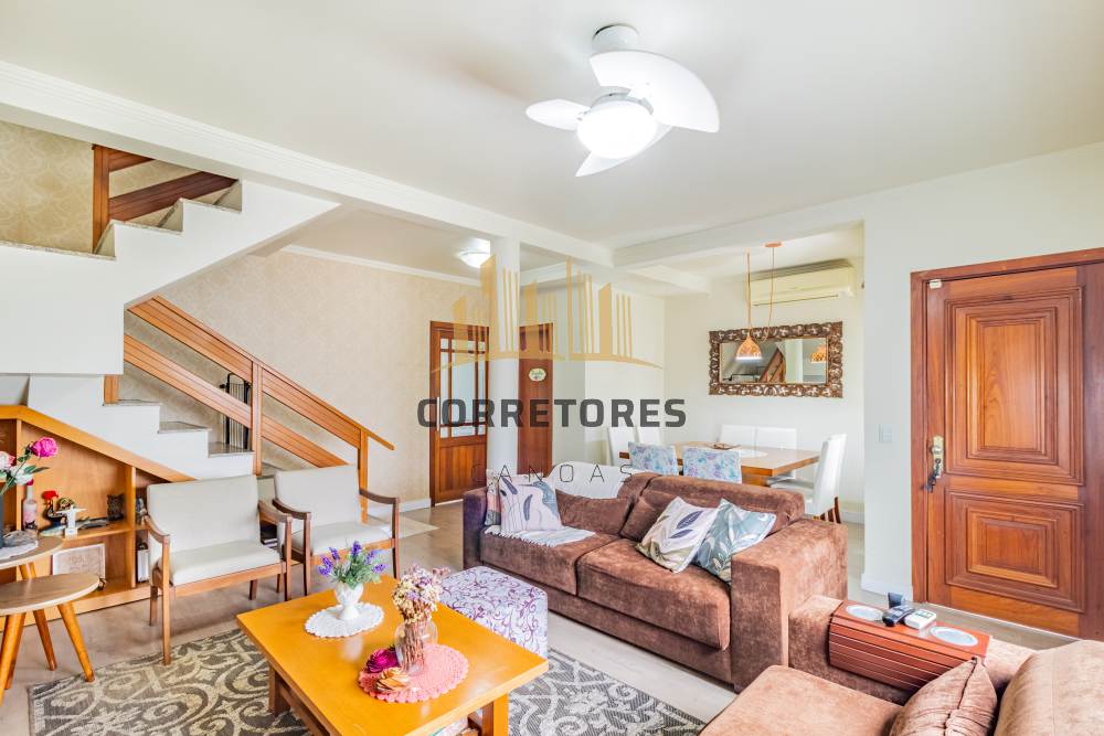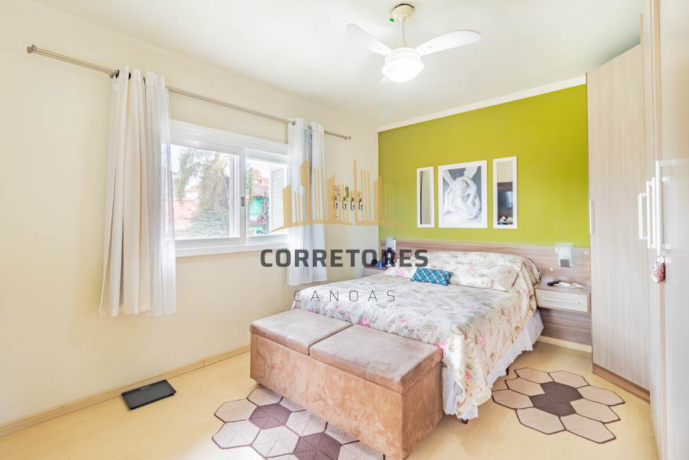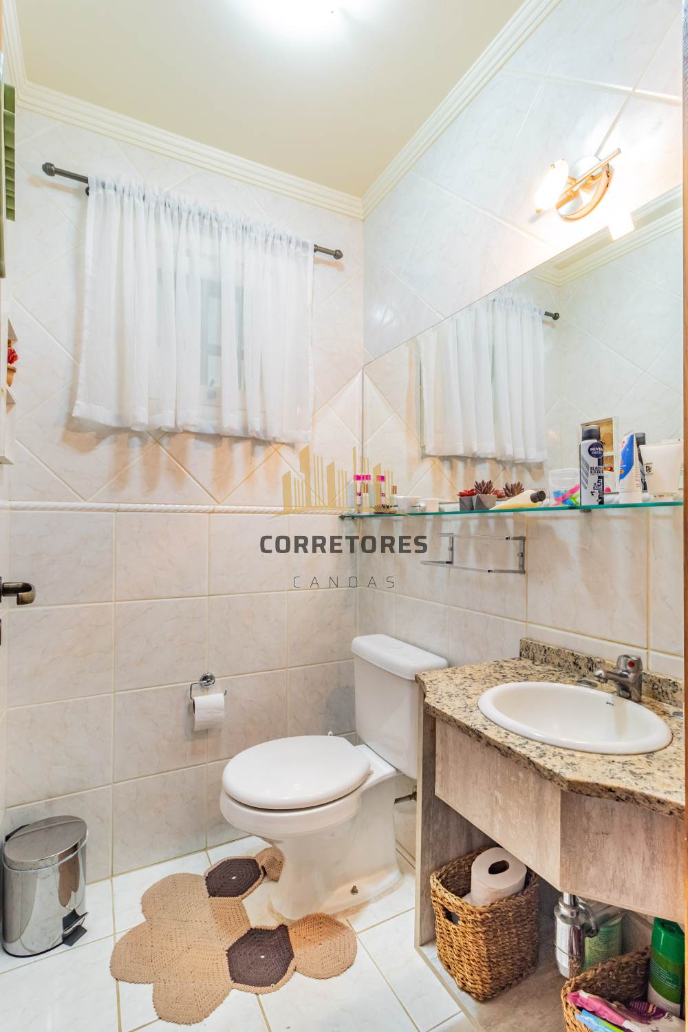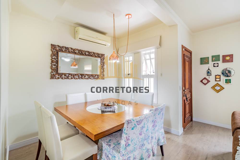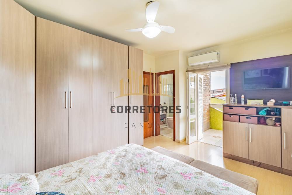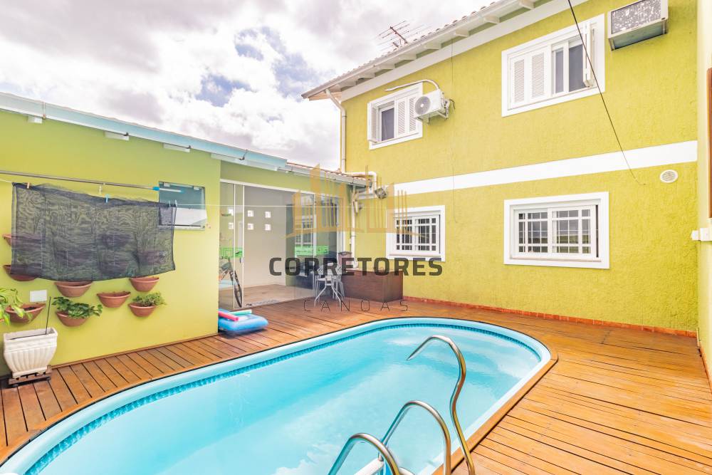 Corretores Canoas - Vende sobrado com 03 dormitórios, senso uma suíte com sacada, banheiro social. Térreo com sala de estar e jantar integradas, lavabo, ampla cozinha. Garagem para dois veículos com churrasqueira. Lavanderia com banheiro auxiliar. Piscina aquecida com deck. Ficam móveis planejados e splits.