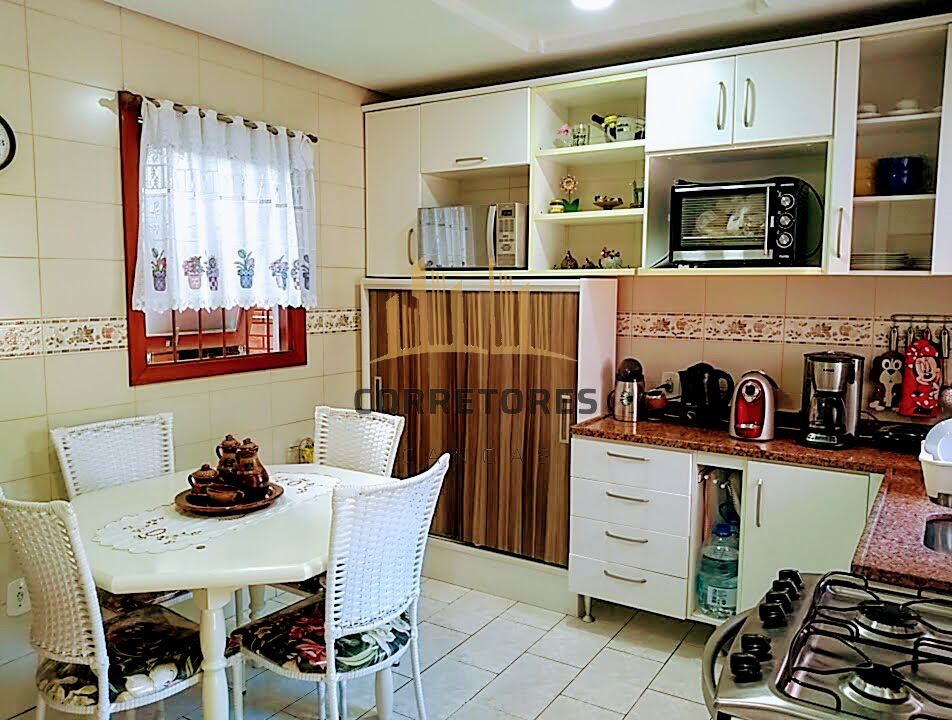Lindo Sobrado com 03 (três) dormitórios sendo 01 (uma) suíte com closet, banheiro auxiliar, lavabo, living 02 (dois) ambientes (estar/jantar), cozinha e área de serviço, circulação, hall de entrada, lareira, sacada, split, água quente, churrasqueira, pátio na frente, cerca elétrica, piso tabuão, despensa, rebaixo em gesso, garagem para 03 (três) carros.