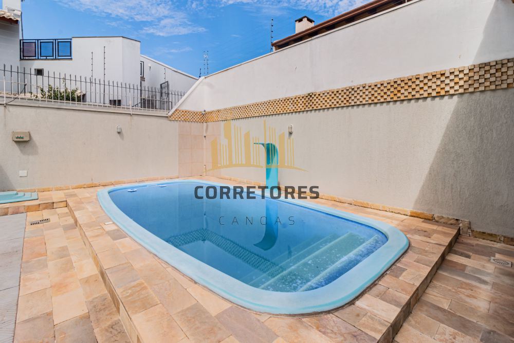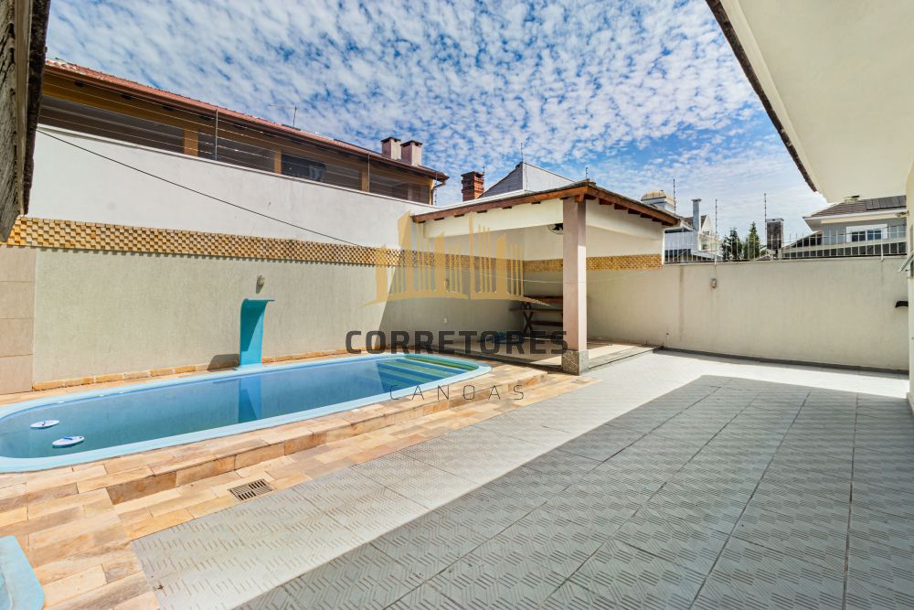 Corretores Canoas - Vende no bairro Moinhos de Vento ao lado do Park Shopping Canoas, Sobrado em excelente localização com 4 dormitórios sendo uma suíte com closet, banheiro social, sala de estar com lareira, sala de jantar, cozinha, lavabo, área de serviço, garagem coberta para 2 carros, pátio com piscina, sistema de alarme com monitoramento por câmeras, fica móveis planejados e splits.