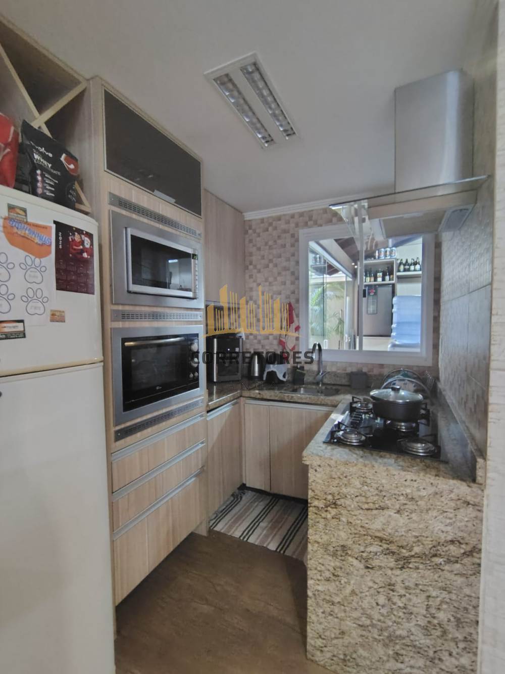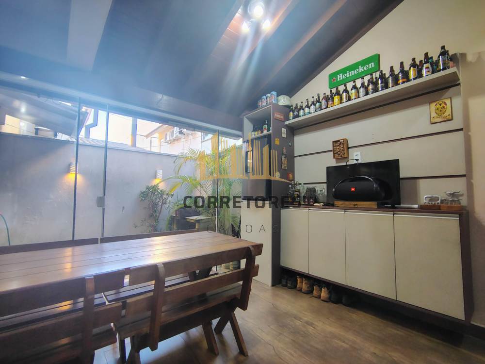 Sobrado em condominio fechado com living amplo em "L" com hall e lavabo, sala de estar e jantar integrados a cozinha. Todo o revistimento é em porcenato alto padrão. Área gourmet com churrasqueira, forno para pizza, envidraçado com patio interno. No piso superior com 3 quartos e 1 suite, banheiro social. Amplos, espaçosos e bem iluminados. Ficam móveis sob medida, 3 aparelhos de ar condicionado, torre com forno elétrico e microondas , área gourmet completa e mobiliada (exceto cervejeira). Garagem coberta para 02 veículos.