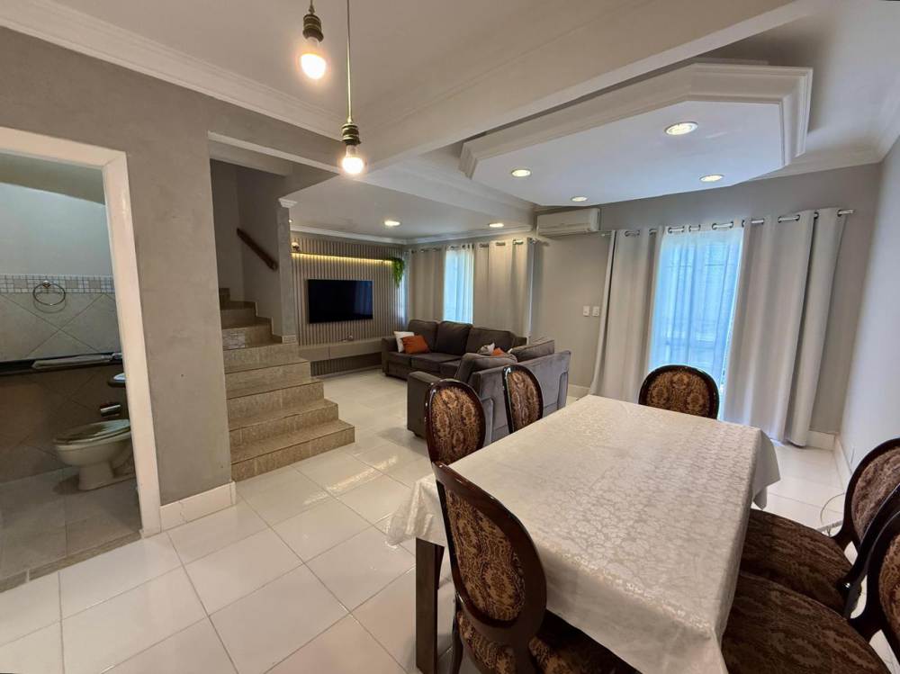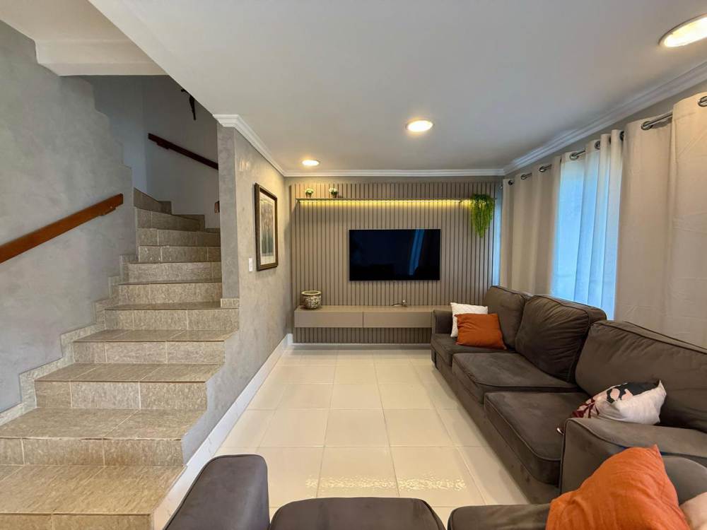 Imóvel único e diferenciado, possuí um estilo peculiar de construção, sendo todo inspirado na arquitetura dos imóveis da cidade de Londres. A unidade em questão é a maior do condomínio, tendo um metro a mais de largura que as demais casas e também é composta de um amplo living dividido em dois ambientes, sendo sala de estar e sala de jantar, cozinha (com opção de transformar em estilo americana), área de serviço independente, outra despensa que pode ser transformado em banheiro de serviço (pois tem a espera, originalmente era um banheiro de serviço), lavabo, banheiro social e 2 (duas) vagas de garagem/box cobertas com acesso direto pela rua.