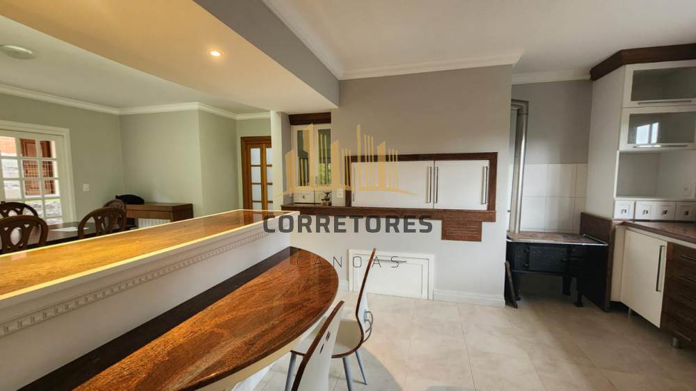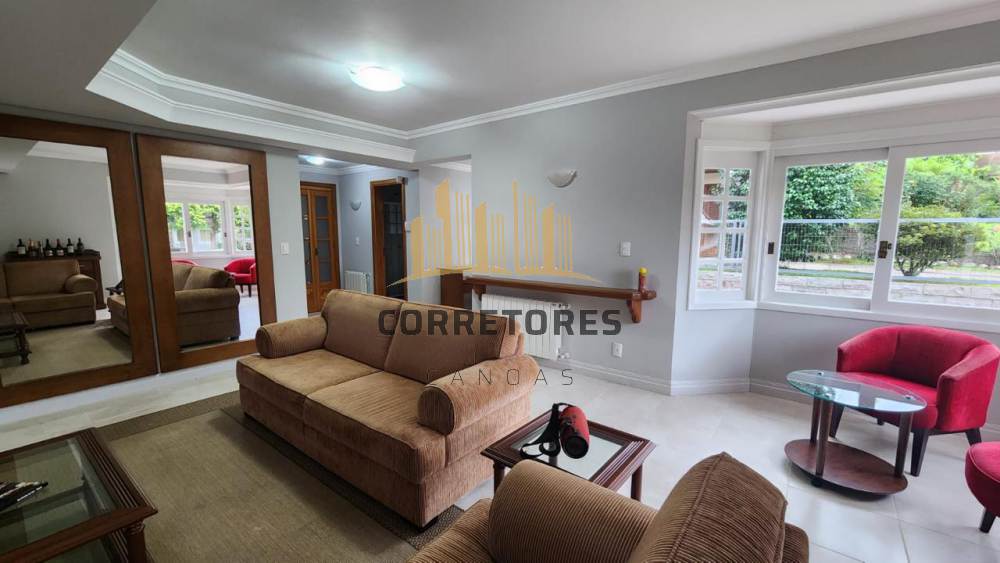 Cozinha americana, com churrasqueira, bifeteira, fogão a lenha e sala e jantar para 08 pessoas. Ao lado um estar íntimo (que pode ser transformado em home office ou mais um dormitório). Lavanderia, depósito e garagem para 03 veículos. Nos fundos um jardim totalmente plano e arborizado.
